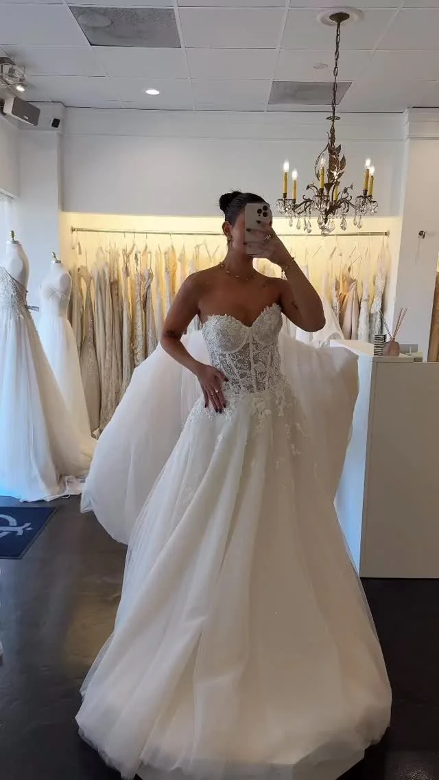 Explore our exquisite collection of designer bridal gowns, now available at exceptional prices. Revel in the beauty of selecting your dream wedding dress today. Book your wedding dress shopping appointment today at our South Tampa bridal boutique. We can’t wait to meet you!